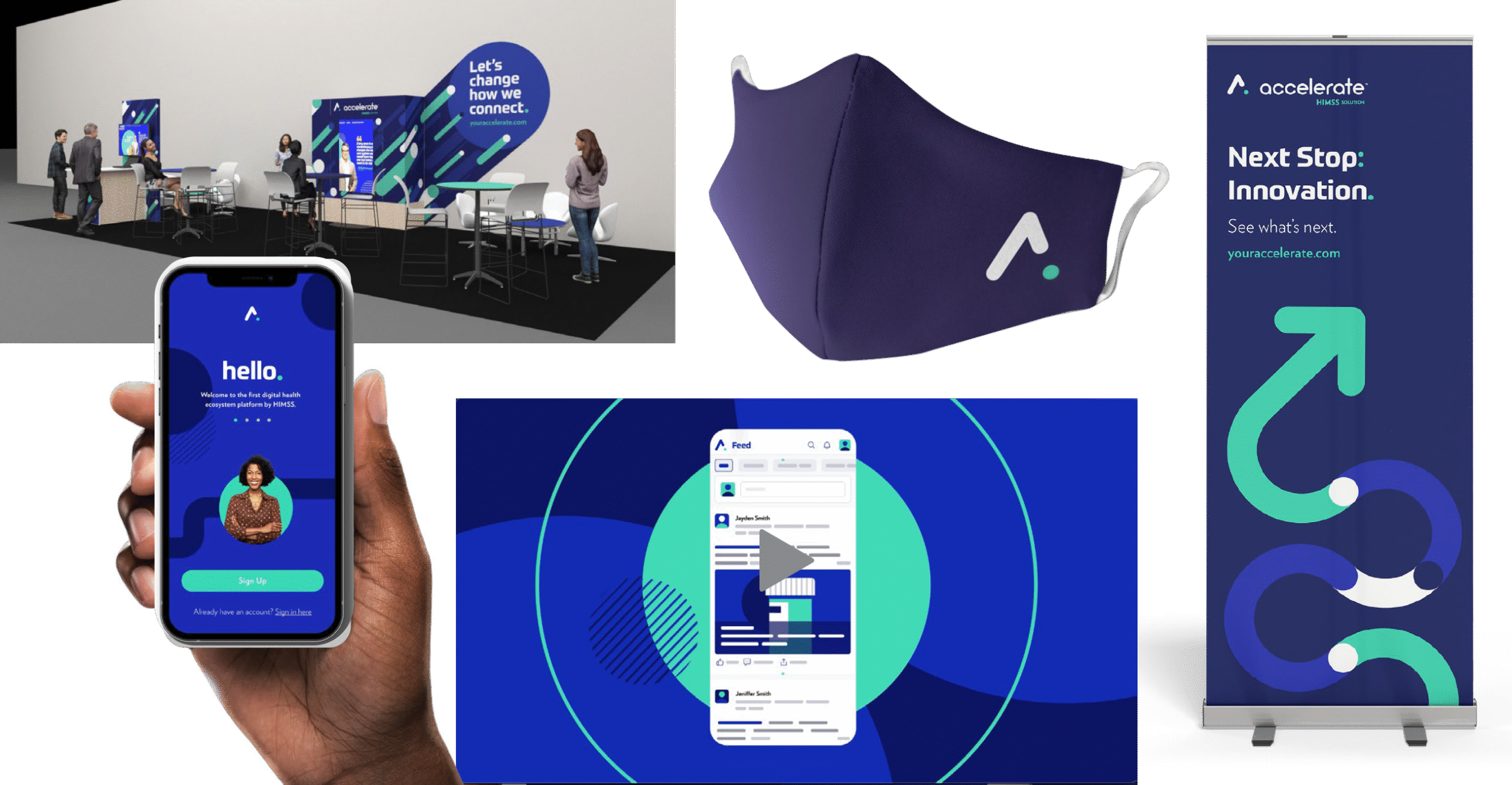 An app created by HIMSS solely for health tech professionals. Similar to LinkedIn, health tech professionals use the app for networking, education and event planning. While still in the HIMSS brand wheelhouse, it is wholly different. This work involved a great deal of UX/UI design and included a companion booth that was created to introduce Accelerate to the world.